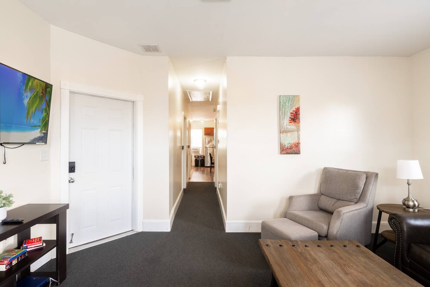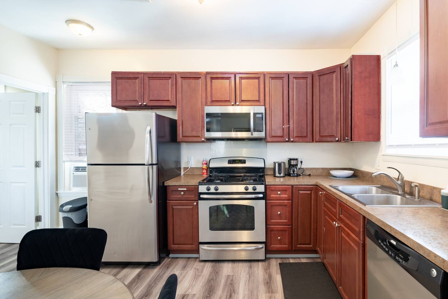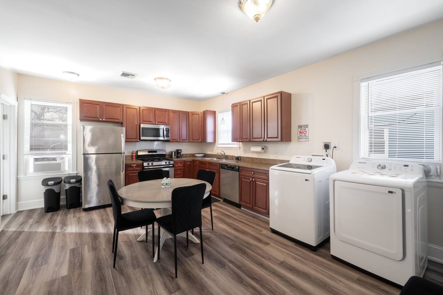 Urban, spacious & fully equipped ποΈβthis 3-level renovated townhouse features 8 bedrooms, 3 full baths with 2 tubs and 1 walk in shower, 2 kitchens, several rooms to lounge in and washer/dryer on every floor ποΈππ³. Sleep comfortably with 3 Queen beds, 5 Full beds, 2 twin foldaways & cozy love seats (no sofa beds.) Enjoy central heat, forced air & window A/C units βοΈπ₯. Our private fenced driveway fits 3+ cars.π AccessibilityβΏ? Not quite, but we do have a 1st-floor queen bedroom, the same level as the walk-in shower, kitchen, living & dining areasβjust 6 steps to enter the townhouse . Need more rooms? Ask about nearby locations within 15 mins! π‘
