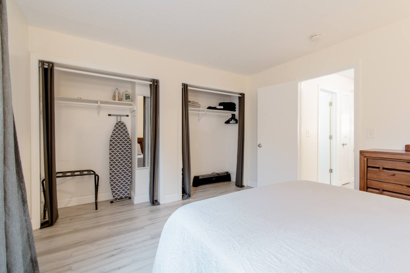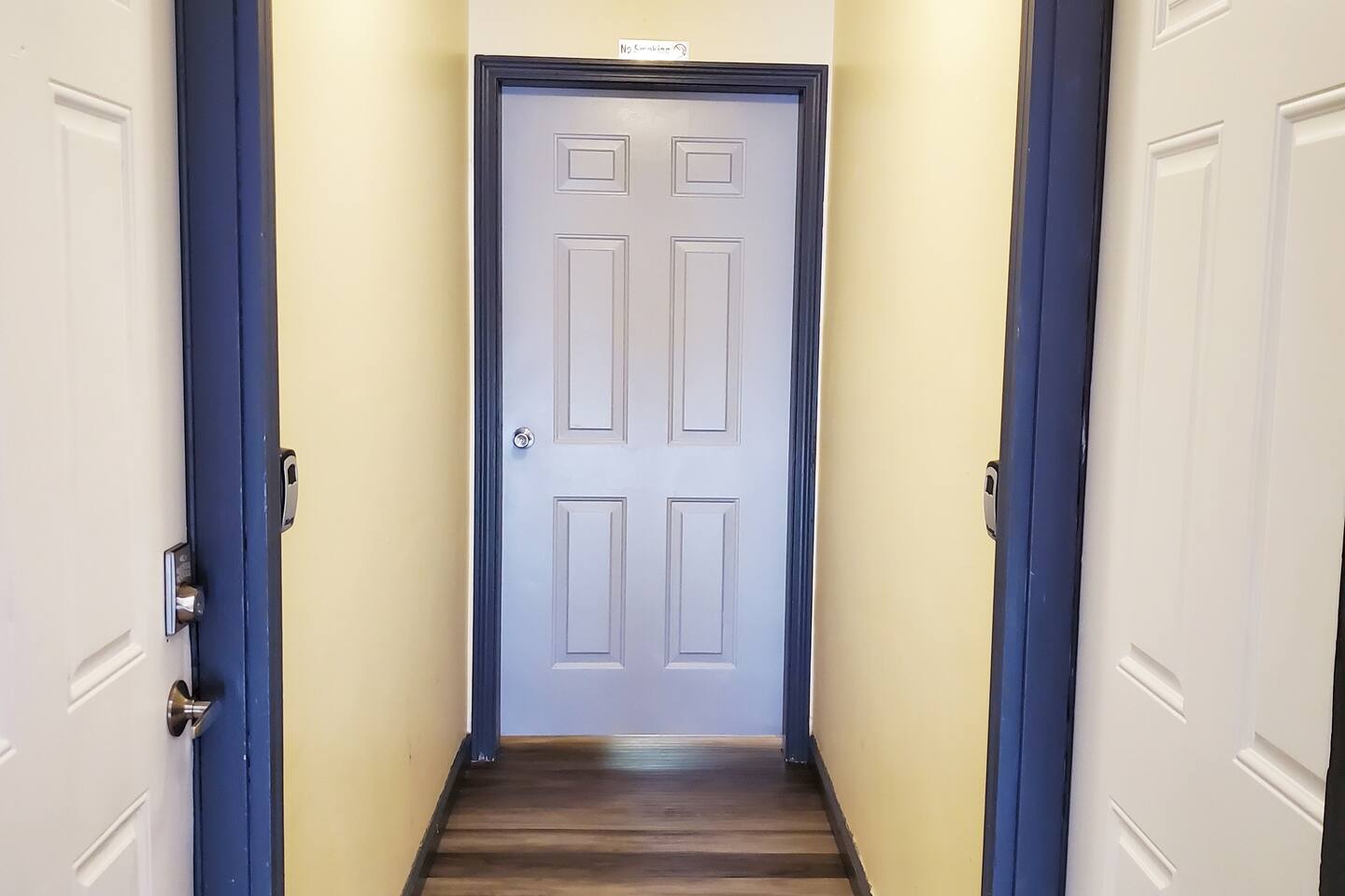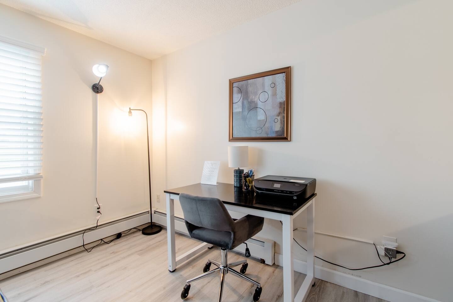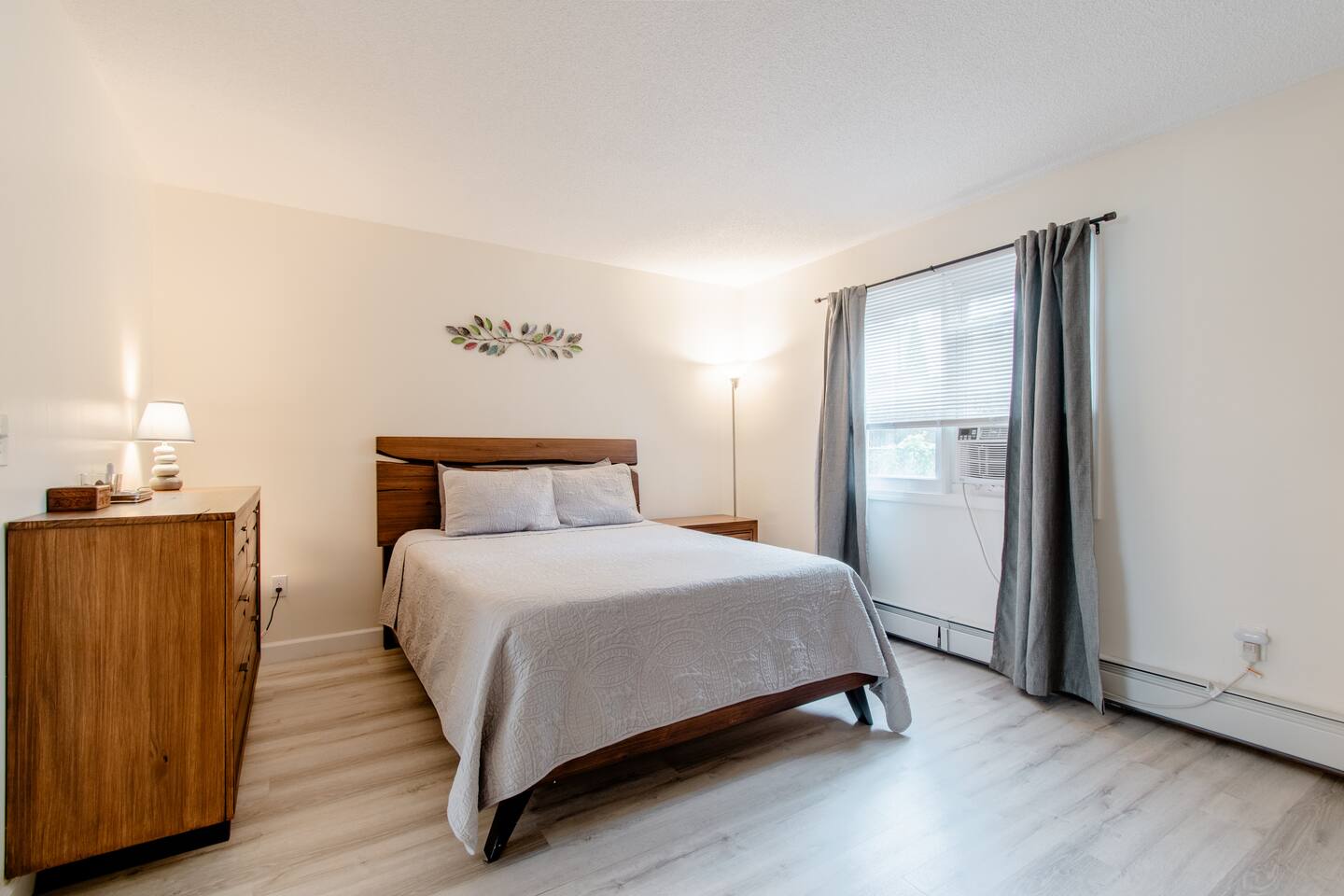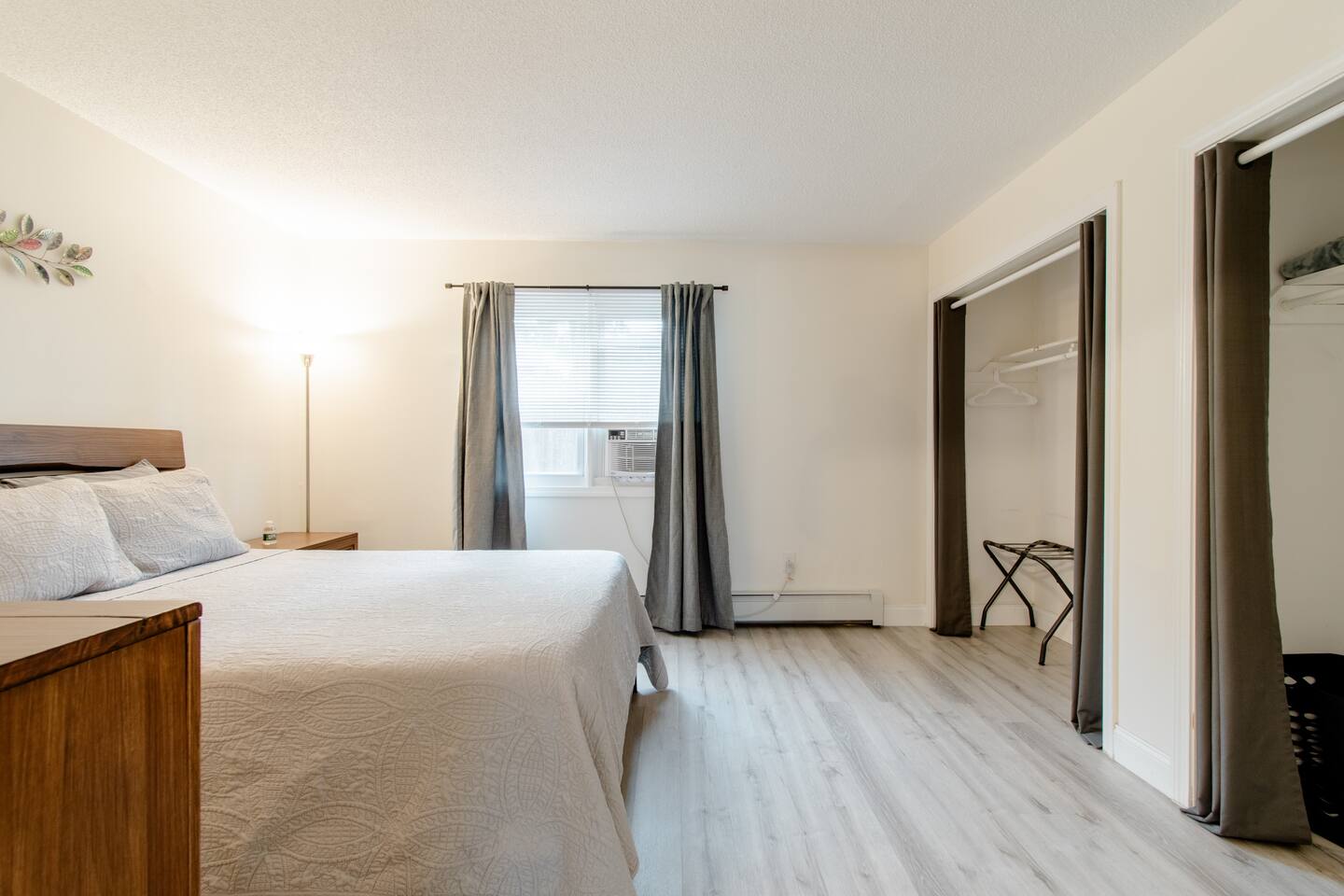 ๐ข 4 attractive and invitingly spacious 1-bedroom apartment suites in a quiet building (2 per floor) fully equipped with bed, bath, kitchen and office essentials. ๐ณ Kitchen with essentials for preparing a family meal size, large and small appliances including stove, refrigerator, toaster, coffee maker, mini blender, and electric kettle. ๐๏ธ Each unit includes a queen bed, bath/shower combo, kitchen & office essentials. ๐ Full bath with shower-soaker tub & great water pressure. ๐ผ Workspace with color printer, 43-50" Roku TV and fast Wi-Fi. ๐๏ธ Fold-up twin bed(s) based on availability, fees may apply. ๐งบ Shared low traffic 24/7 laundry & ๐ ฟ๏ธ designated parking. All else is private. ๐ Book multiple suites or the entire building when all units are available! ๐ซ No pets or animal(s) allowed โ strict policy for everyone's safety. โ ๏ธ Non-compliance fee applies per house rules.