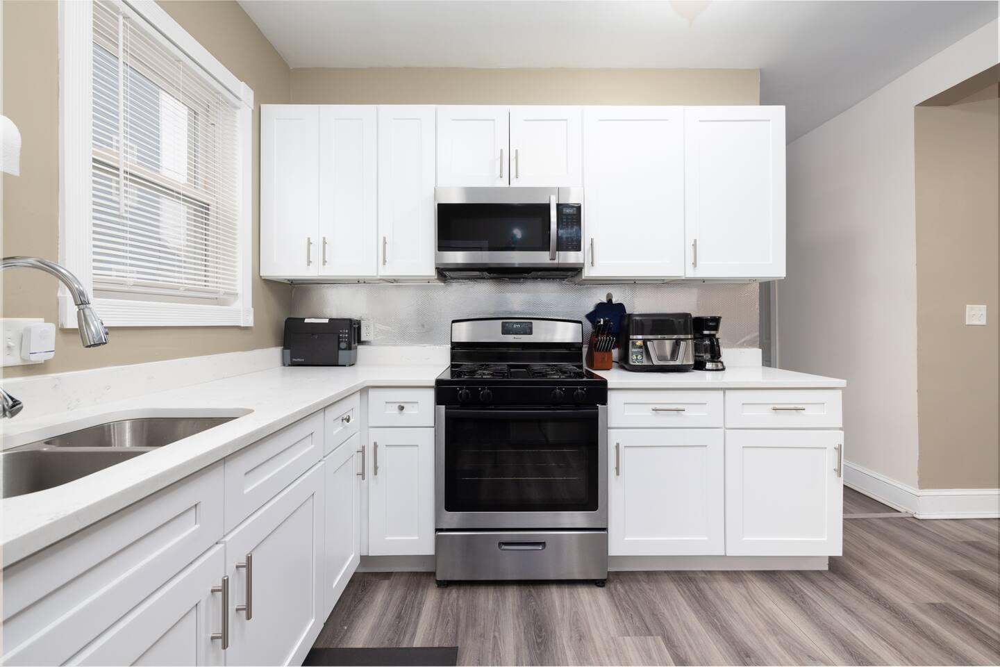 Welcome to our thoughtfully renovated 2-story townhome, ideal for larger groups. It includes 2 Bathrooms and 5 bedrooms total, with Queen bedroom on the 1st level, spanning a total of 2600 square feet. Whether you're working professionals or a large group visiting for a family or local event, our space provides clean, comfortable and equipped accommodations. Just 5 minutes from the Convention Center, experience city living with complimentary amenities like light cleaning for longer stays.